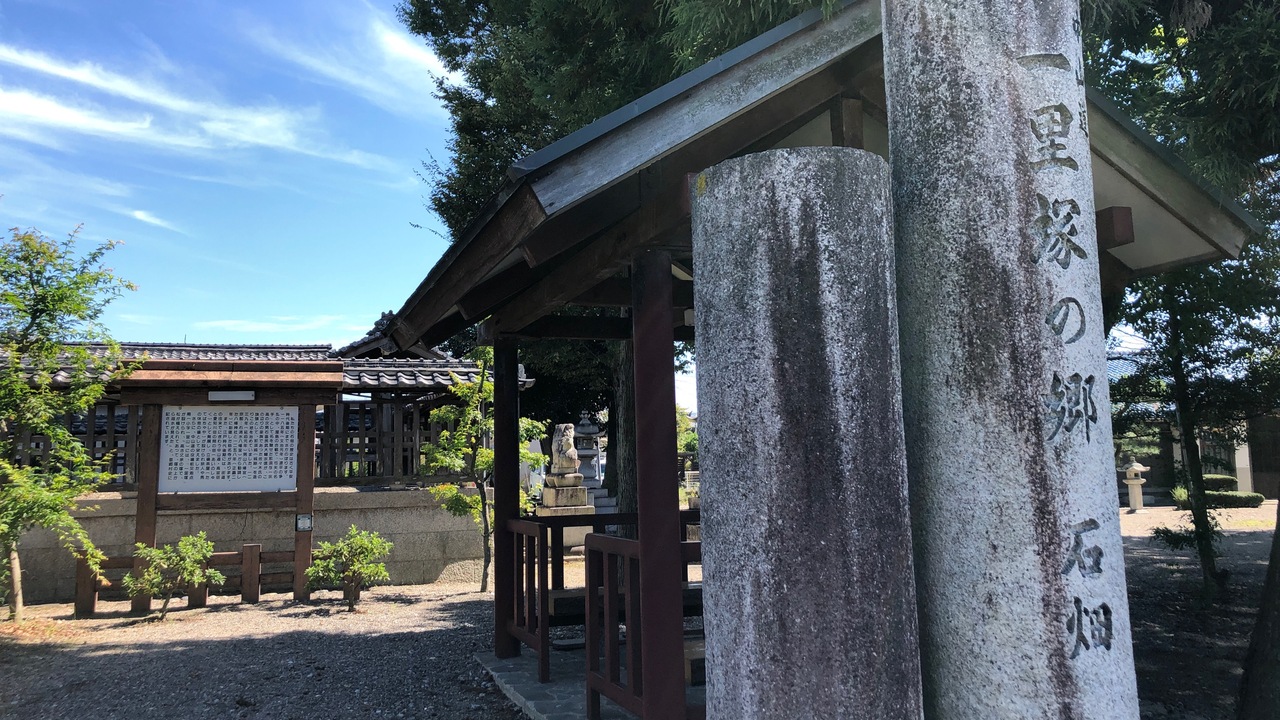 東洋一といわれた豊郷小学校・旧校舎に行く途中で見つけました。石畑という名前は、平安時代からあるようです。愛知川宿と高宮宿の間の宿が設けられ、茶屋や一里塚がつくられたようです。現在も、小高い山が残っています。