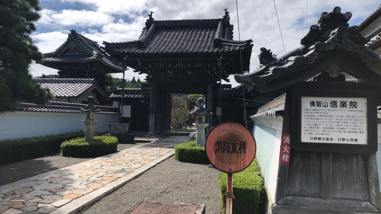 日野町中心部にあるお寺です。日野を治めていた、蒲生家の菩提寺です。日野エリアでは大きめのお寺です。「信楽」は「しんぎょう」と読みます。信楽(しがらき)とは無関係のようです。本堂の天井には、日野の画家・高田敬輔の雲龍図があります。
