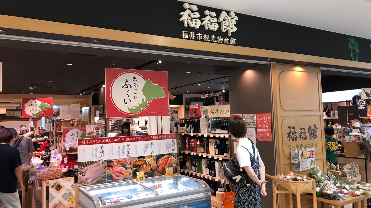 福井駅前の複合施設・ハピリンの2Fにあります。福井市だけでなく、福井県内の土産が売られています。福井駅エリアでは、最大級の品揃えです。隣接するレストランでは、越前そばやソースカツ丼など、福井のご当地グルメがいただけます。
