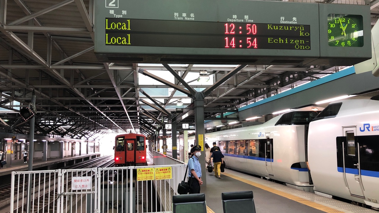 福井~一乗谷~越前大野~九頭竜湖を結ぶローカル線です。多くても1時間に1本しか無く、本数がとても少ないです。越前大野止まりの列車も多いです。大野へは、京福バスが30~60分ごとに走っており、バスの方が便利です。