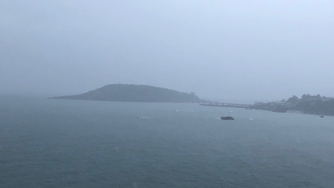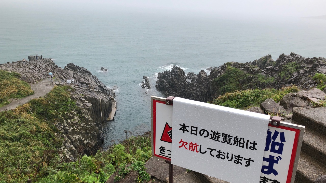 東尋坊の崖の下を遊覧します。通常、高い崖の上から見下ろす東尋坊ですが、遊覧船は下から崖を見上げます。急で高い崖なので、迫力がありそうです。今回は、強風のため運休中でした。東尋坊は、海沿いにあるからか、風が強かったです。