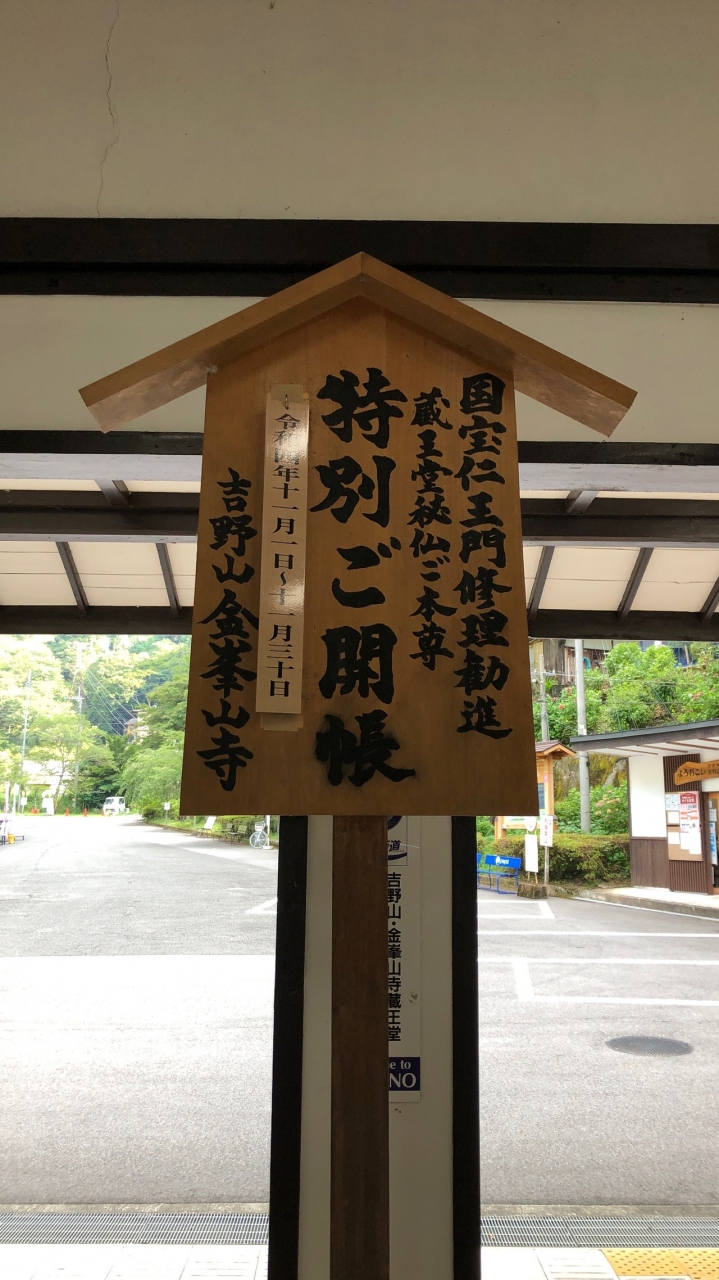 金峯山寺は、吉野山の中にあるお寺です。蔵王堂は、金峯山寺の中心的存在といえます。東大寺大仏殿に次ぐ、国内最大の木造建築物です。少し離れないと、上まで見ることができない大きさです。令和4年11月は、蔵王堂の秘仏が、特別開帳されていました。