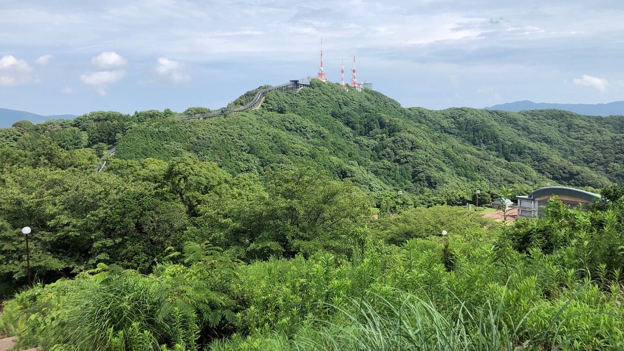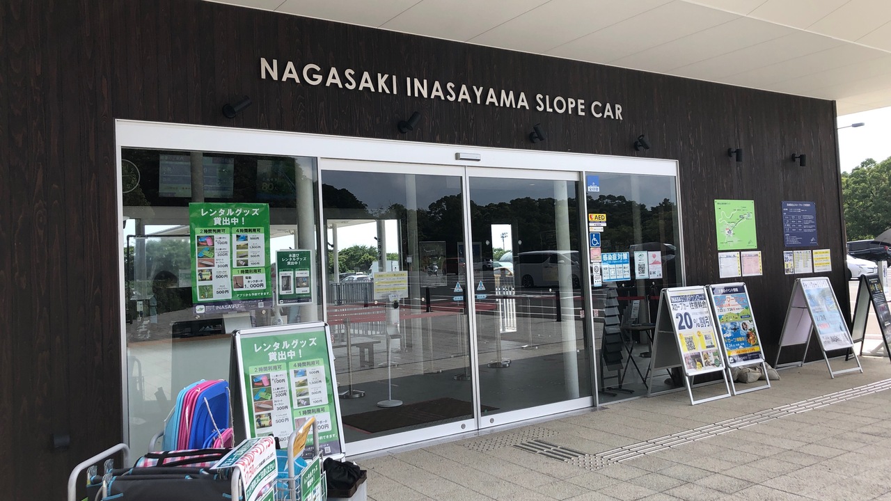 スロープカーは、稲佐山中腹駐車場と稲佐山山頂を結びます。小さなケーブルカーのような乗り物です。稲佐山山頂に行くには、ロープウェイが有名ですが、自動車利用の場合、スロープカーがおすすめです。稲佐ナビというアプリをDLすれば、20%引になります。