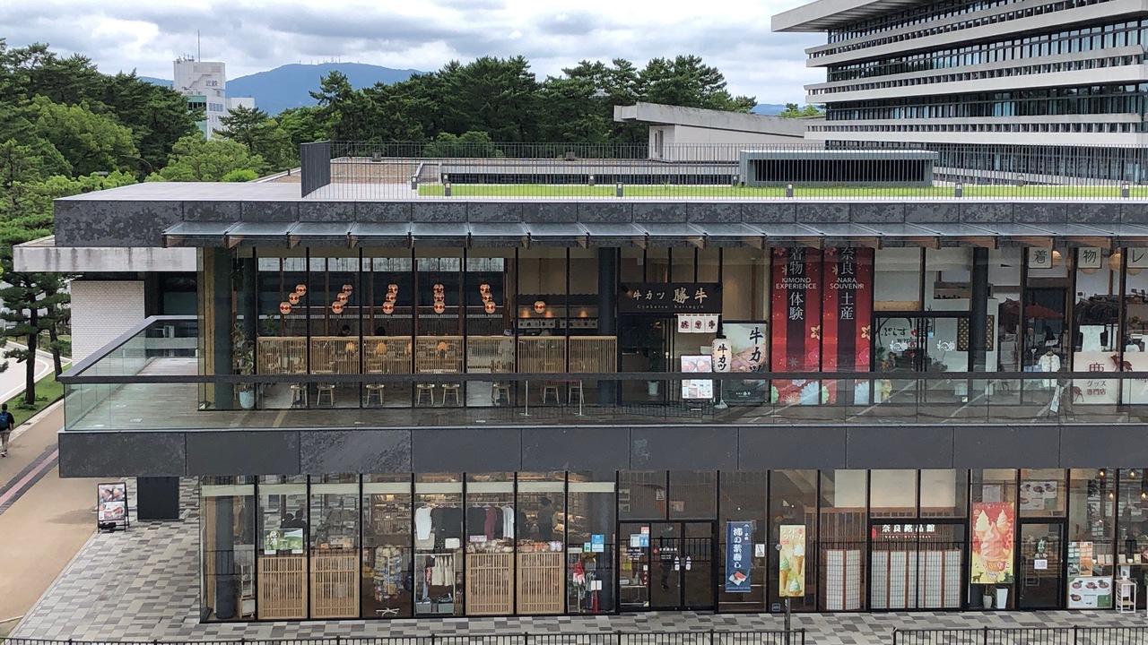 奈良県庁の近くにオープンしたバスターミナルです。団体ツアーや修学旅行など、観光バスの乗り降りに使われます。路線バスは発着しません。1Fに土産屋「奈良銘品館」、 2Fにスターバックスコーヒーがあります。 屋上からは、若草山などが眺められます。