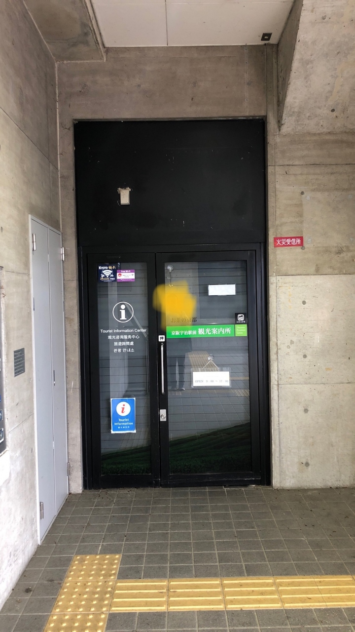京阪宇治駅の改札外にある観光案内所です。日本有数の観光地・宇治にしては、小規模な観光案内所です。営業時間は9時から17時なので、夜に到着した場合、利用できませんでした。宇治市の観光案内所は、京阪宇治駅のほか、近鉄大久保駅などにもあります。