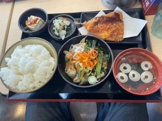 今回は、ニラにんにくもつ煮定食にアジフライをトッピングで注文。