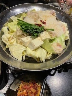 名物のとろろモツ鍋が絶品でモツ鍋のスープは塩ベースで、野菜やモツの旨みが出て美味しいです。