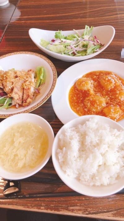 ランチは定番の海老のチリソース・麻婆豆腐に人気の青椒肉絲、唐揚げなど全8品から1品選べるランチで今回は海老のチリソースを食べました。