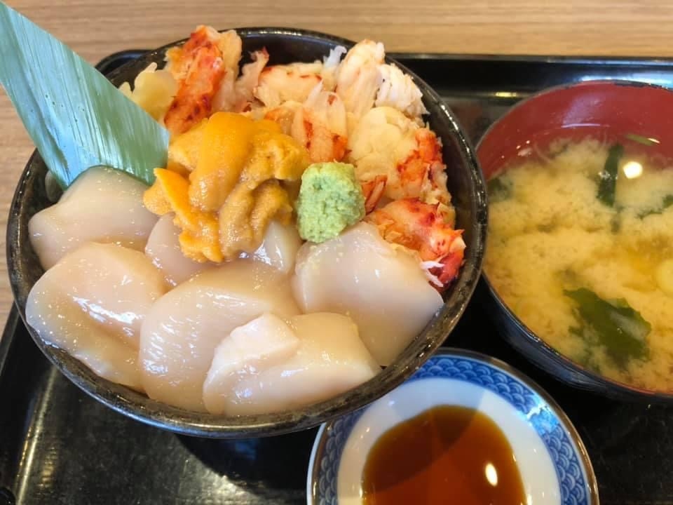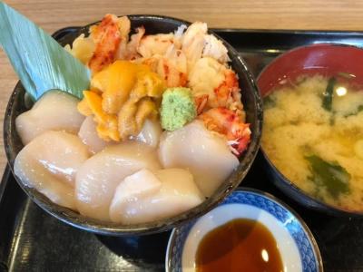 3色丼はウニ、ホタテ、タラバガニの3種類の丼になります。
