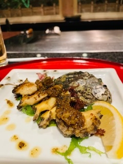 目の前に広がる鉄板で焼いてくれて提供してくれるので目でも舌でも楽しめます。
