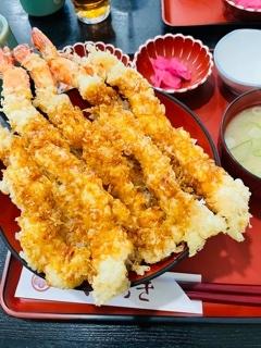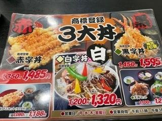 中でも大きなえび天5本が乗った赤字丼が有名です。