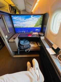 座席は広くモニターも大きくフラットにしたベットもゆったりと過ごせました。