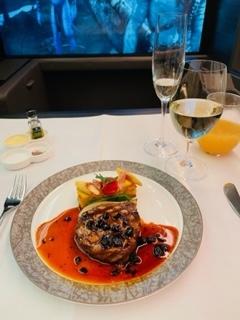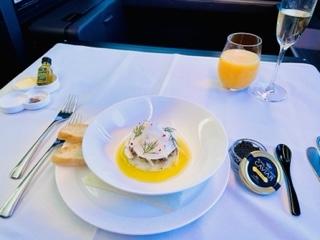 機内食は洋食を選び、キャビアや牛フィレ肉のステーキは美味かったです。