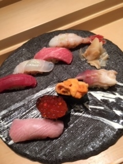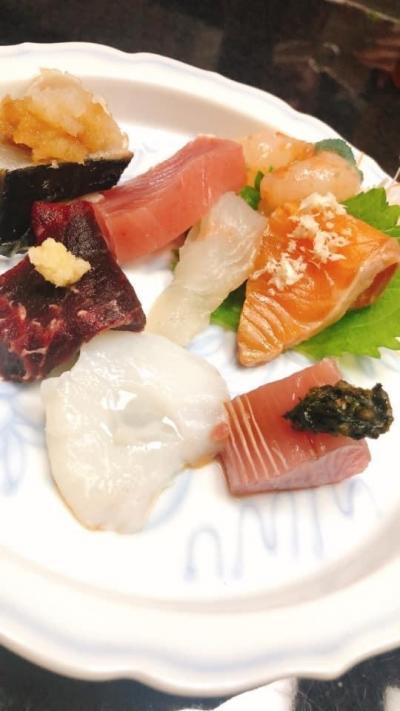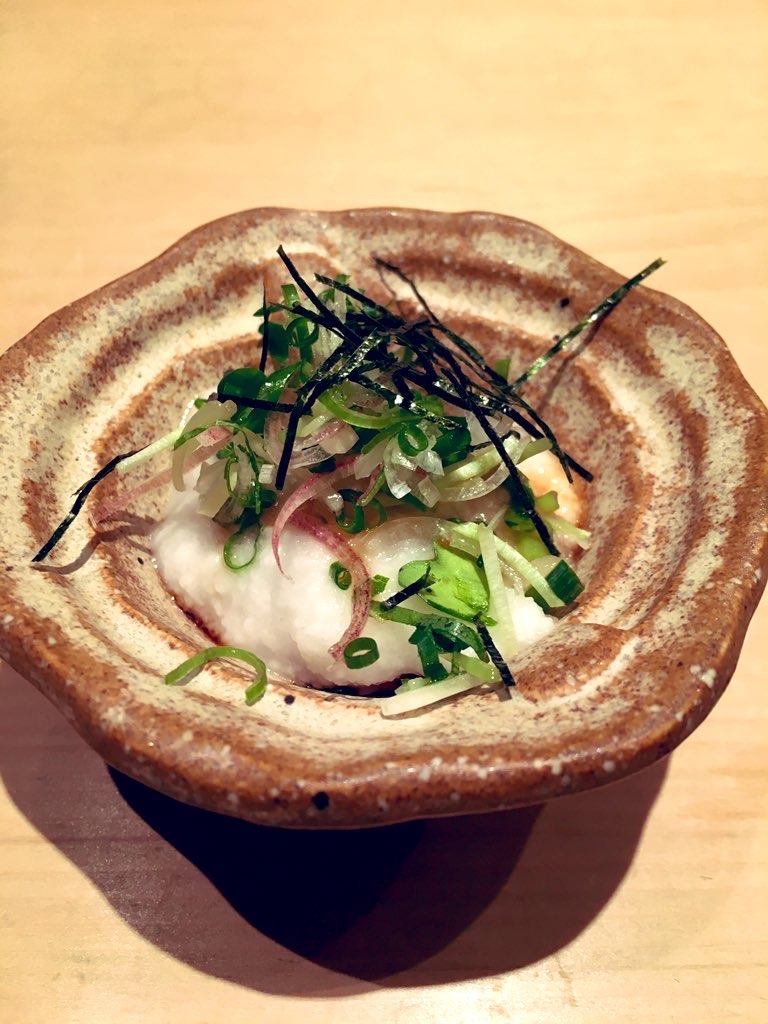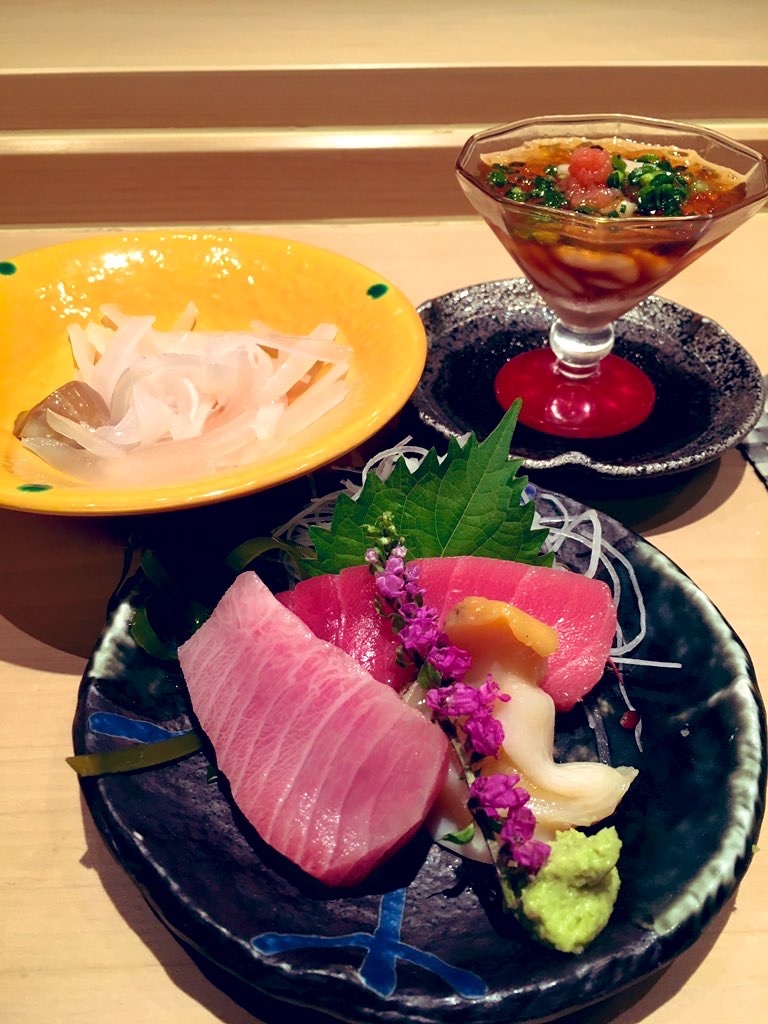 マグロのとろろかけ・イカ刺し・お造り・牡蠣のジュレかけ・茶碗蒸し・マグロのネギ間・握り8貫が出てきました。