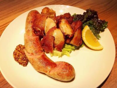 今回は、ポテトフライ・手造りソーセージ・・もち豚の黒コショウ焼き・マルゲリータを注文。