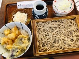 今回は、山わさび蕎麦とつぶ丼のミニを注文。