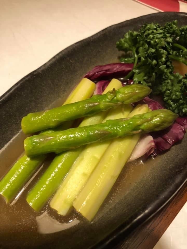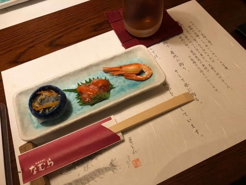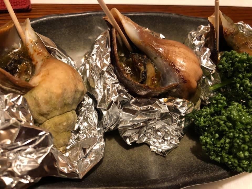 今回は、刺身盛り・青つぶ魚醤焼・道産アスパラバター焼き・いかの一夜干しを注文。