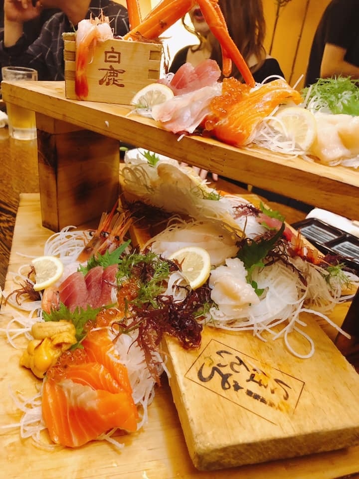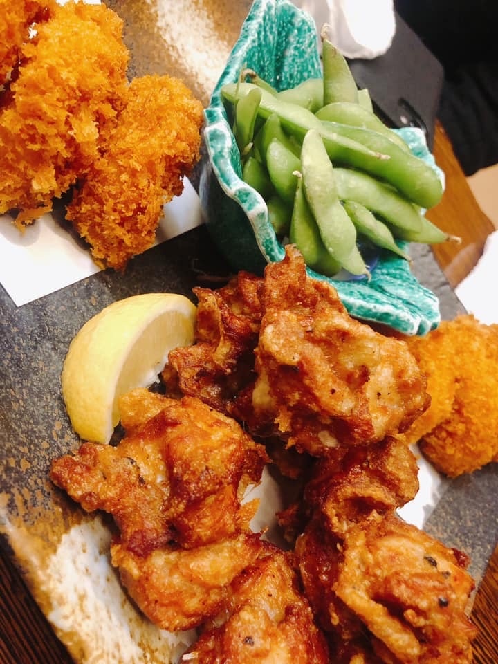 今回は、刺身9点盛り・カキフライ自家製タルタル・ジューシー鶏ザンギ・たこ足刺しを注文。