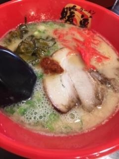 コッテリの豚骨スープの上にチャーシュー、ネギ、辛味だれでビジュアルは博多の人気店「一蘭」に似ています。