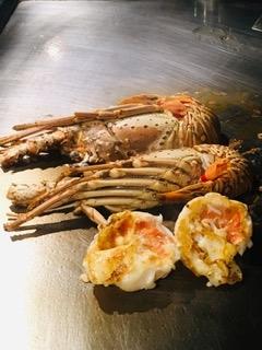 夕日やゴルフ場を見ながらの食事は最高で、伊勢海老・ホタテなども付いていて美味しかったです。
