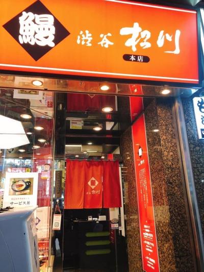 世界一有名なスクランブル交差点側に、うなぎ松川の大きな看板があります。