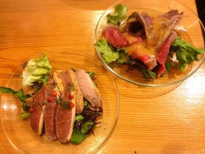 今回は、仔鹿のロースソテー・根室鯖のブルスケッタ・パンチェッタとキノコのパスタ・オマール海老のグラタン仕立て・ピザを注文。