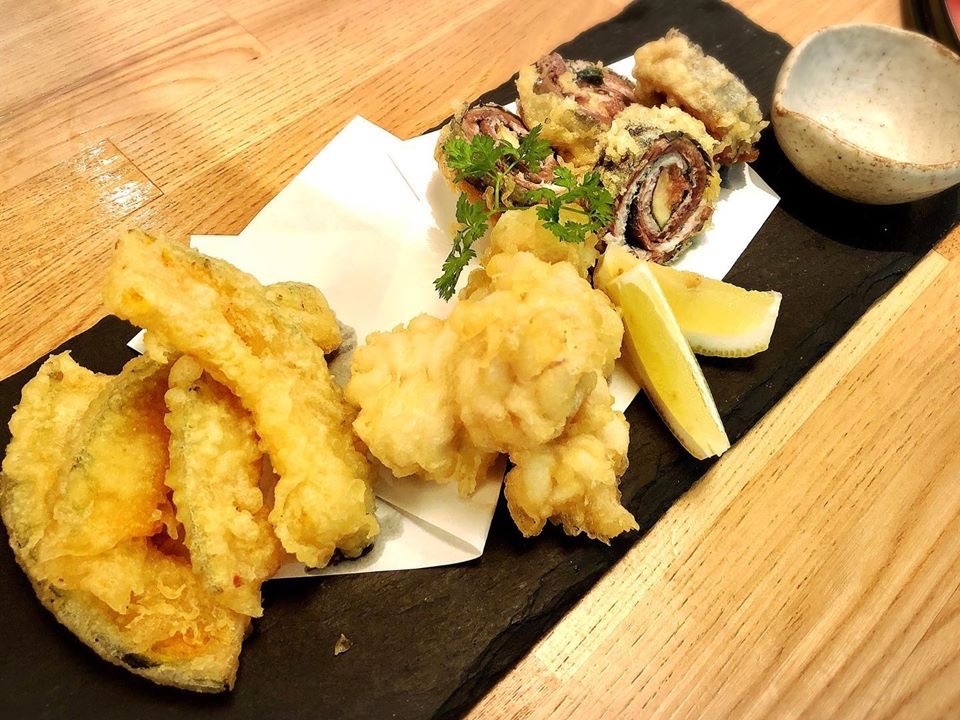 今回は、お刺身盛り合わせ・天ぷら盛り合わせ・ニシンのお造り・帆立バター焼き・蒸し牡蠣を注文。