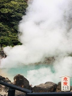 別府の地獄のなかでも最大の海地獄はコバルトブルーの色をしていて地獄というのがふさわしくないほどの美しさです。