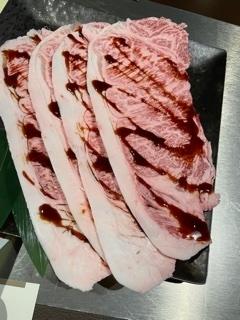コースのお肉は、厚切りタン・ザブトン・ミスジ・カイノミ・カタサンカク・イチボ・サーロイン・ミノ・ホルモン・ガツが出てきました。