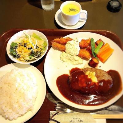 今回は、チーズハンバーグ&海老フライセットを注文。