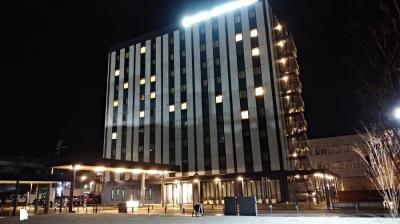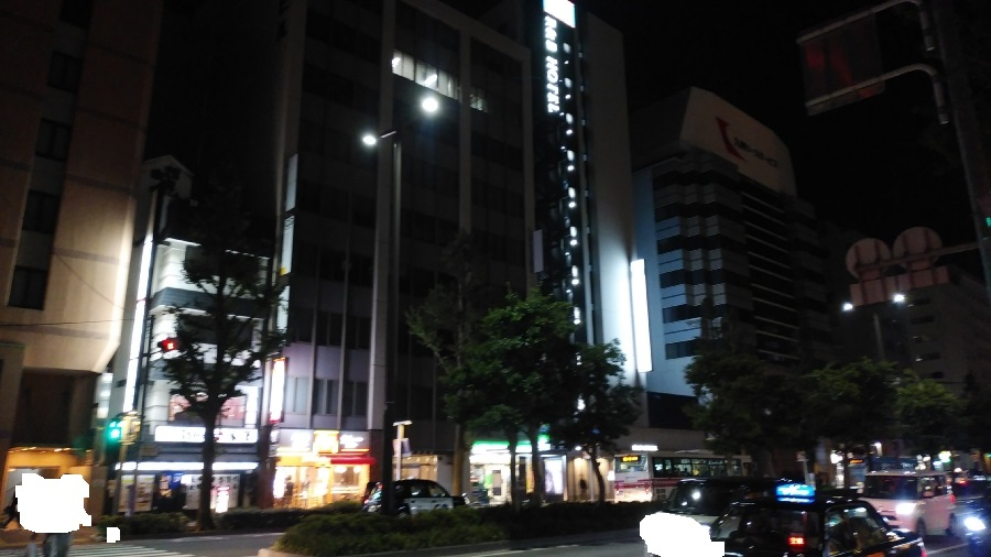 熊本市電市立体育館前駅から徒歩10分くらいのところにあるホテル。県庁から近く夜は交通量も少なく、閑静な立地だった。
