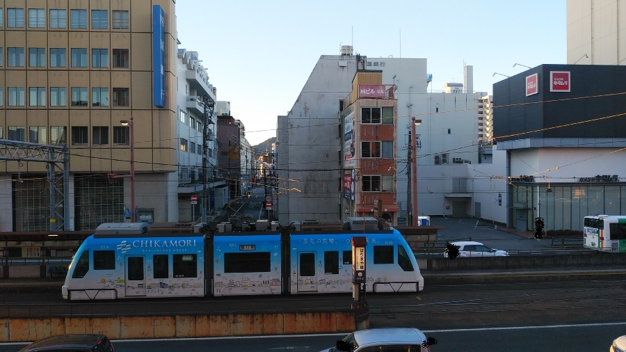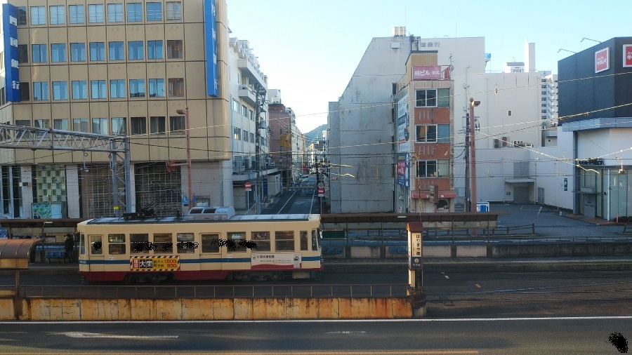 はりまや橋電停の目の前にあるので、客室の窓からは路面電車が行き来する風景が見られ、平日朝のラッシュの賑わいも見られた。- 旅行時期