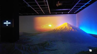 南館は信仰の対象となった富士山と人々とのかかわりの展示が中心。VRの体験ができ、360度の視界でふもとから山頂までの特徴的な映像を見ることができた。