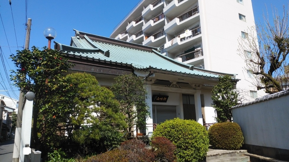 山門のデザインが特徴的で、他ではあまり見られない外観だった。一方、本堂建物は比較的オーソドックスな寺院らしい建築。山の手通り沿いに広い敷地を有しているのが印象的だった。
