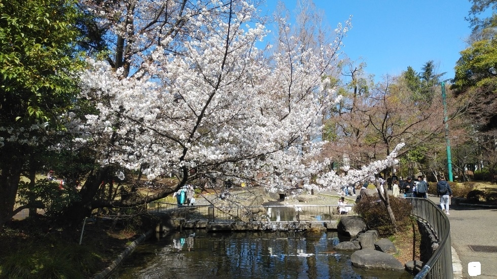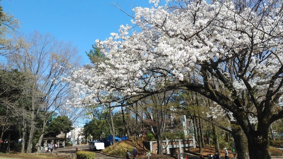 桜が咲き始めの時期だったので芝生広場で花見を楽しむ来園者もおり、かなりにぎわっていた。