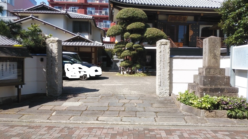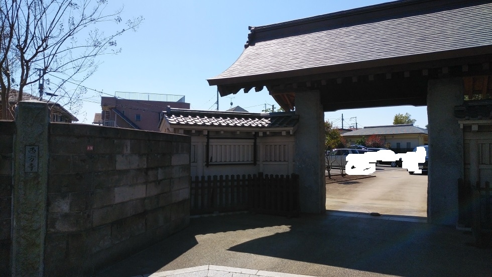 住宅街の生活道路のカーブしたところに山門がある。石の柱で支えられた柱は立派な印象。境内は現代的に整備されており、駐車場などに利用されていた。本堂の建物は大きく重厚感があり立派だった。
