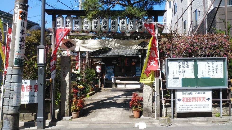 和田帝釈天通りという通りの名称にもなっているが、歴史などの詳細はわからなかった。住宅街の一角に小さなお堂が祀られているが、植物をはじめとして地域の方々に丁寧に管理されている印象を受けた。
