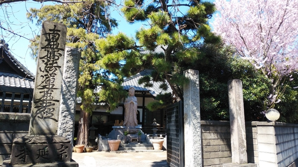 重厚感のある山門が立派。境内も広く、本堂をはじめ建物がいくつか配置されていた。桜の木もあり、まだ先始めだったが満開時はきれいだろうと感じた。