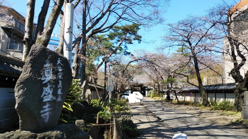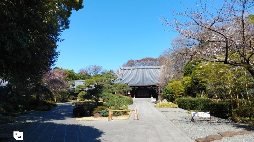 環状七号線沿いに入り口が開かれており、そこから本堂まで参道が続く。意外と奥行きがあり、敷地は広め。参道は桜並木になっており、花の時期は見ごたえがありそう。山門をくぐると境内はよく整備されており、庭木は和の雰囲気が感じられた。本堂の建物もお寺らしい建物で全体的に見ごたえがあった。