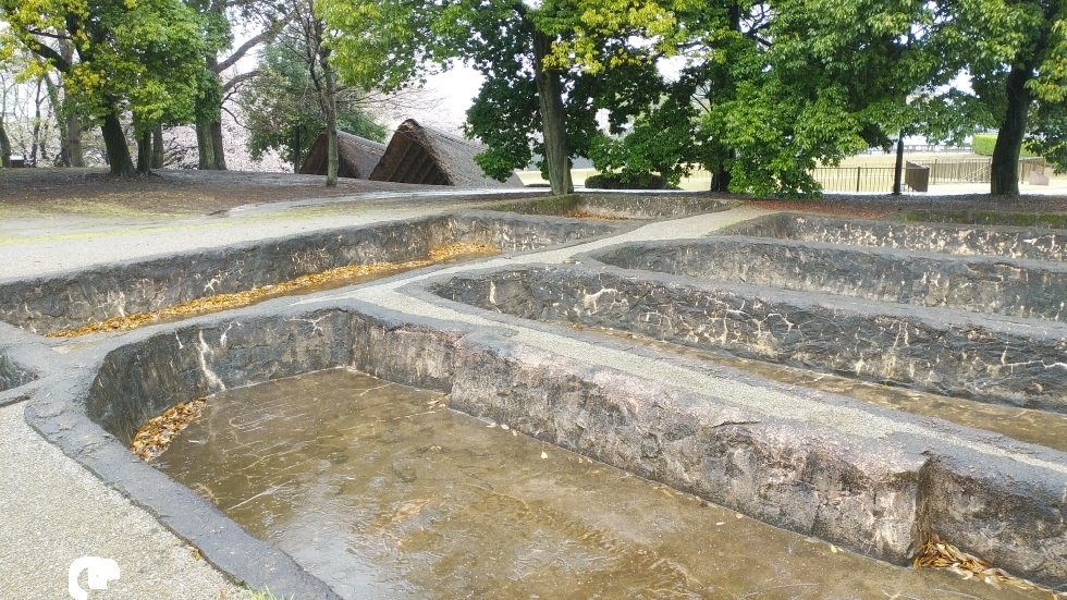 奈良時代に瓦の生産を行っていた場所のようで、窯や工房などの遺構が見つかったという。現在、公園として整備されており、当時の様子がわかるような復元がなされていた。歴史が感じられるスポットなうえ、隣接する桜並木も素晴らしい。散策にもよいかと感じた。