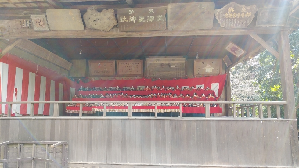 長い歴史にふさわしく、うっそうとした木々に覆われた長い参道から独特の雰囲気が感じられた。境内はにぎわっており、地域の信仰を集めている神社だと感じた。まちかど雛めぐりの会場となっており、こちらでもひな人形を鑑賞することができた。