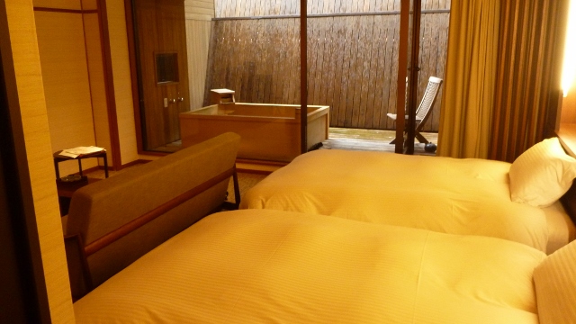 少し贅沢な宿泊をしようと客室露天風呂付の老舗旅館に宿泊。ホテル全体は和と洋の雰囲気がうまく組み合わさり、照明の使い方も良いと感じられる雰囲気のある印象。客室内の風呂は残念ながら温泉では無いとのこと。大浴場はこんぴら温泉で循環ろ過のため多少塩素臭が感じられた。高級旅館にふさわしく従業員の方の気配りが大変よく、食事の給仕など大変手際が良かった。