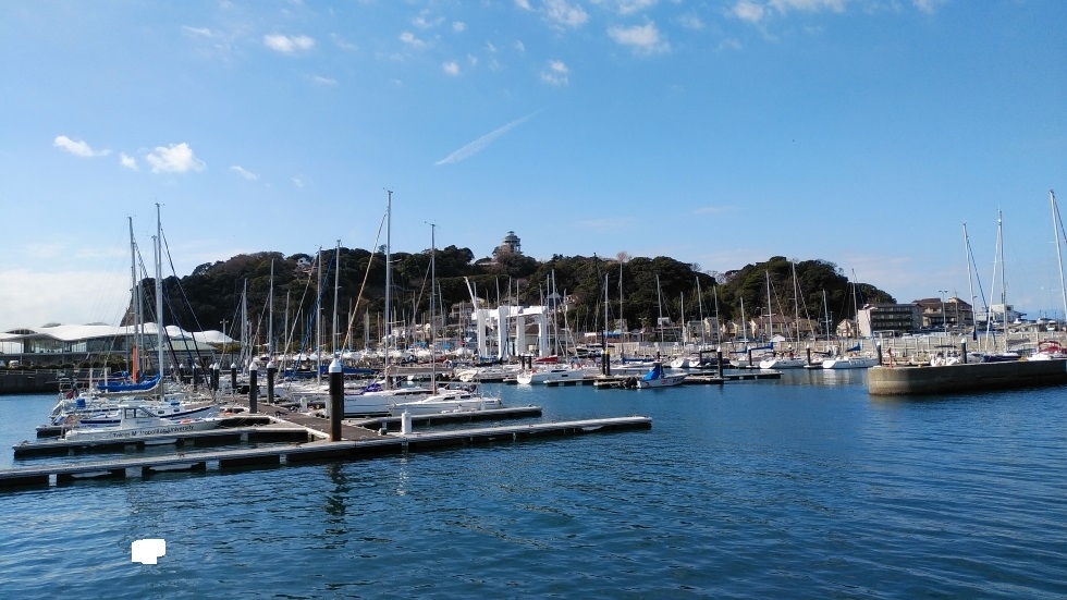 たくさんのヨットが並ぶ風景は普段なかなか見られない風景。江島神社から岩屋方面の参道に多くの観光客が集まるが、こちらももう一つの観光スポットとして江ノ島の違った面を見ることができるスポットだと感じた。