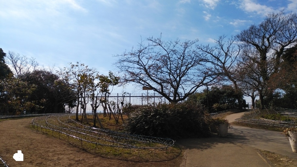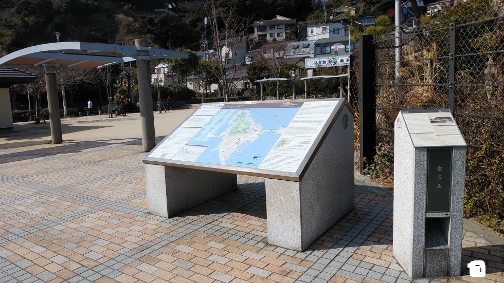 江ノ島駅から徒歩25分くらいのところにあるスポット。江島神社中津宮からエスカーを上がったところに位置する。奥津宮や岩屋を目指す場合、まだまだアップダウンを伴う道のりのため、休憩スポットとして最適だと感じた。ちょっとした緑地や海を眺めることもできた。