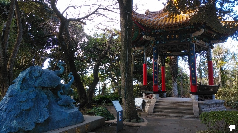 江ノ島駅から徒歩25分くらいのところにあるスポット。藤沢市の友好都市、中国昆明市の象徴的なスポットになっており、東屋とモニュメントが異国の情緒を感じられる空間になっていた。訪れたときは観光客の姿もなく、木々に覆われた空間だったので静かな場所だった。