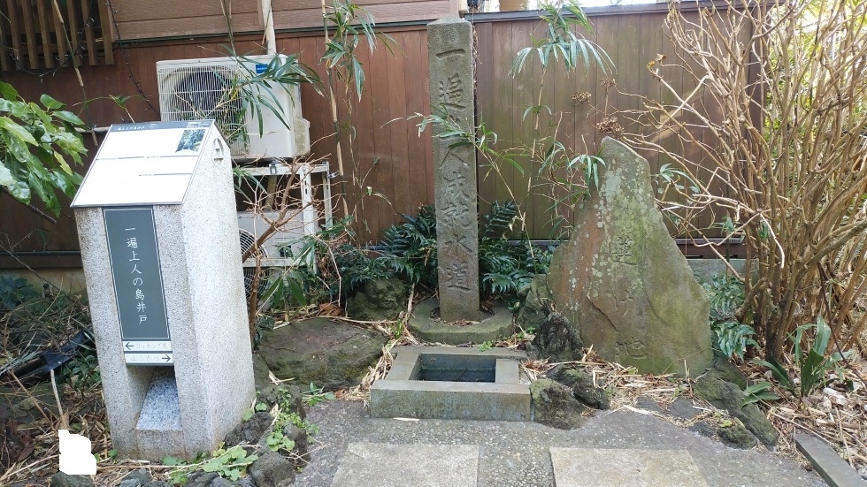 江ノ島駅から徒歩25分くらいのところにあるスポット。一遍上人が飲料水に窮乏していた島民のために掘り当てた井戸があると伝えられている場所。なお、石碑のある場所には井戸らしきものは見当たらず、少し離れた私有地にあるらしい。そのため、実物を見ることはできなかった。比較的高い場所にあるので井戸があるような感じもしなかった。