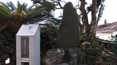 福島漁村という人物が詠んだ俳句が刻まれており、江ノ島の情景が浮かぶような内容だと感じた。江の島館という旅館を経営しており、旅館があった場所に設置されているものだとのこと。現在は江の島大師という寺院となっており、敷地的には大きな旅館だったのかもしれないと感じた。