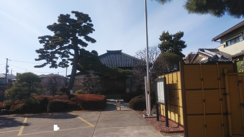 住宅街の生活道路沿いに山門があった。境内はよく整備されていたものの、松などの植物もあり、和の雰囲気が感じられる落ち着いた寺院だと感じた。