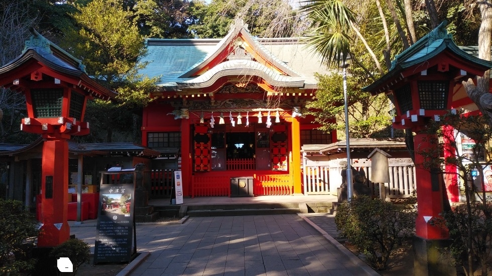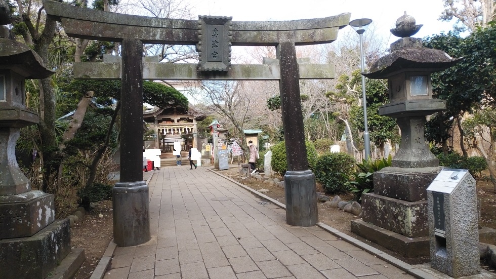 江ノ島駅から徒歩20分くらいのところにある神社。創建年代は不詳。