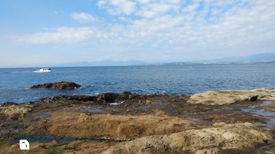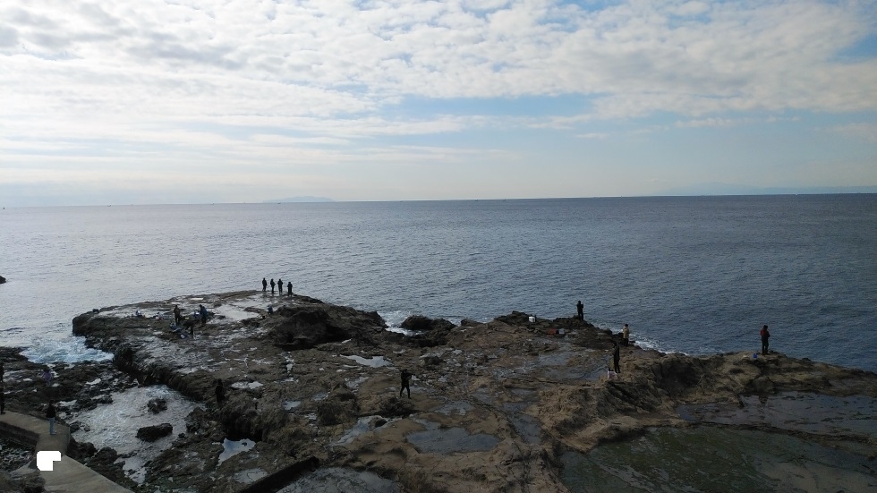 比較的平たんな岩場が見られる景勝地で、遊歩道が設けられていた。天気が良ければ富士山も見られる。釣り客も多くいた。